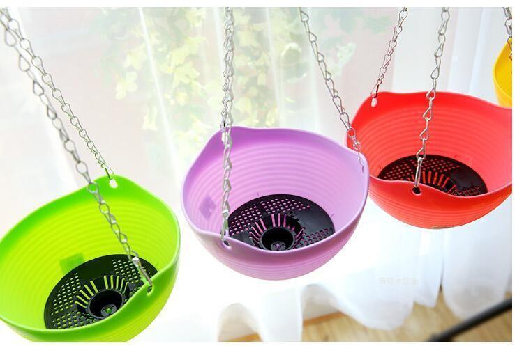 Pack of 2 Plastic Hanging Plant Pots, Flower Pots, Hanging Pots with Chain Hangers Planters Plastic Gardening Pots alternate to Clay Pots