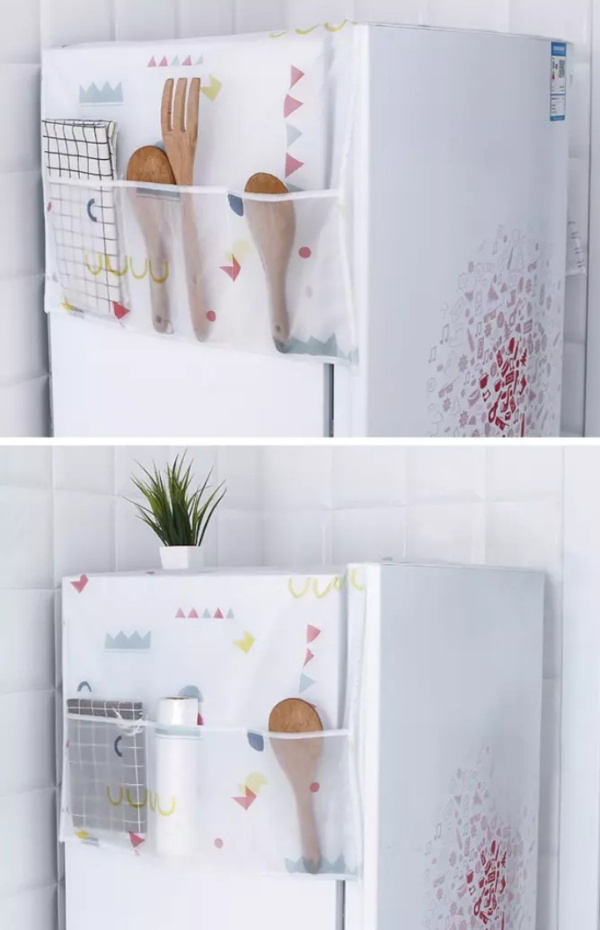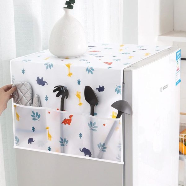 Anti-dust Waterproof Oil-proof Refrigerator Fridge Cover With 6 Pockets Organzier