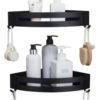 Aluminum Bathroom Shelf Cosmetic Rack In Wall Corner Tub Basket With Hook Storage Bathroom Shelf Black