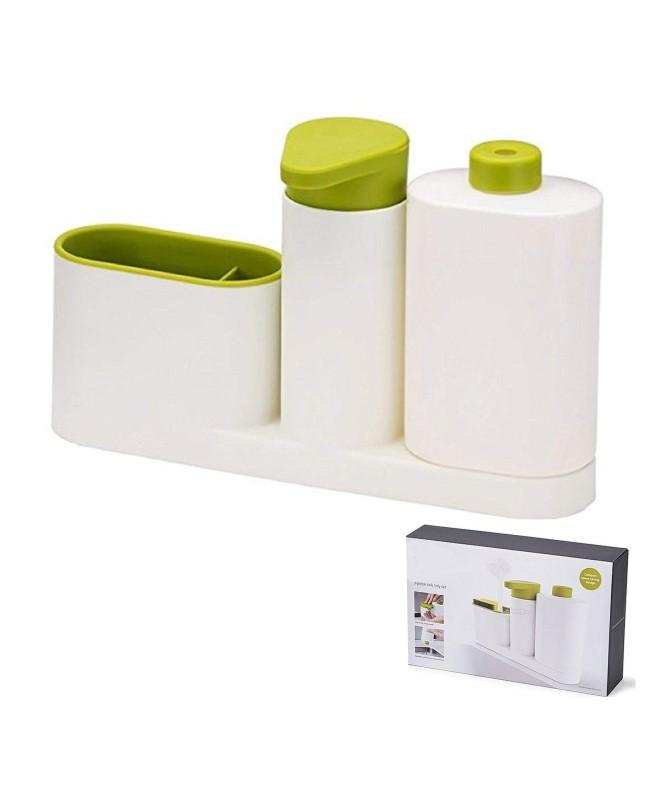 3 in 1 Stand Kitchen Sink Tidy Liquid Soap Dispenser & Sponge Holder and Liquid Bottle