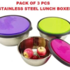 Set of 3 Stainless Steel Lunch Boxes with Leak-Resistant Lids Food Container